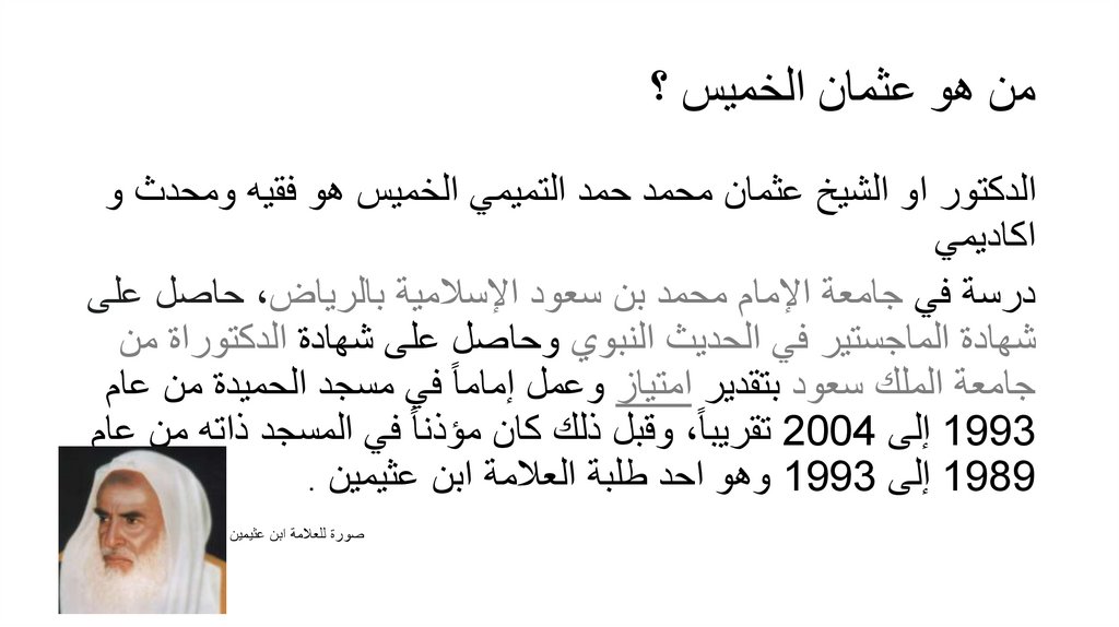 من هو عثمان الخميس ؟الدكتور او الشيخ عثمان محمد حمد التميمي الخميس هو فقيه ومحدث و