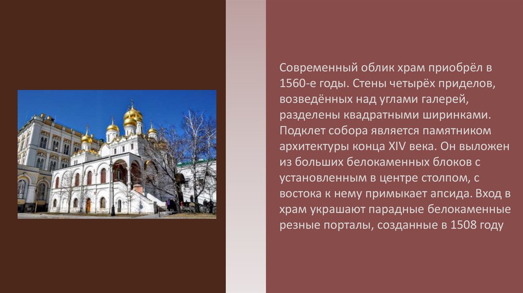 Современный облик храм приобрёл в1560-е годы. Стены четырёх приделов,