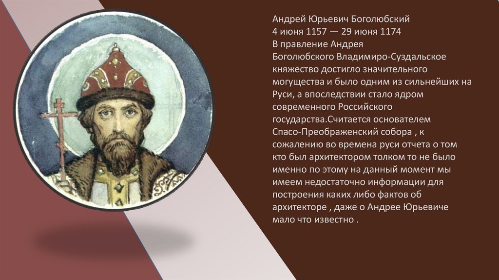 Андрей Юрьевич Боголюбский4 июня 1157 — 29 июня 1174