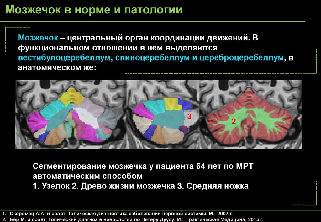 Сегментирование мозжечка у пациента 64 лет по МРТ