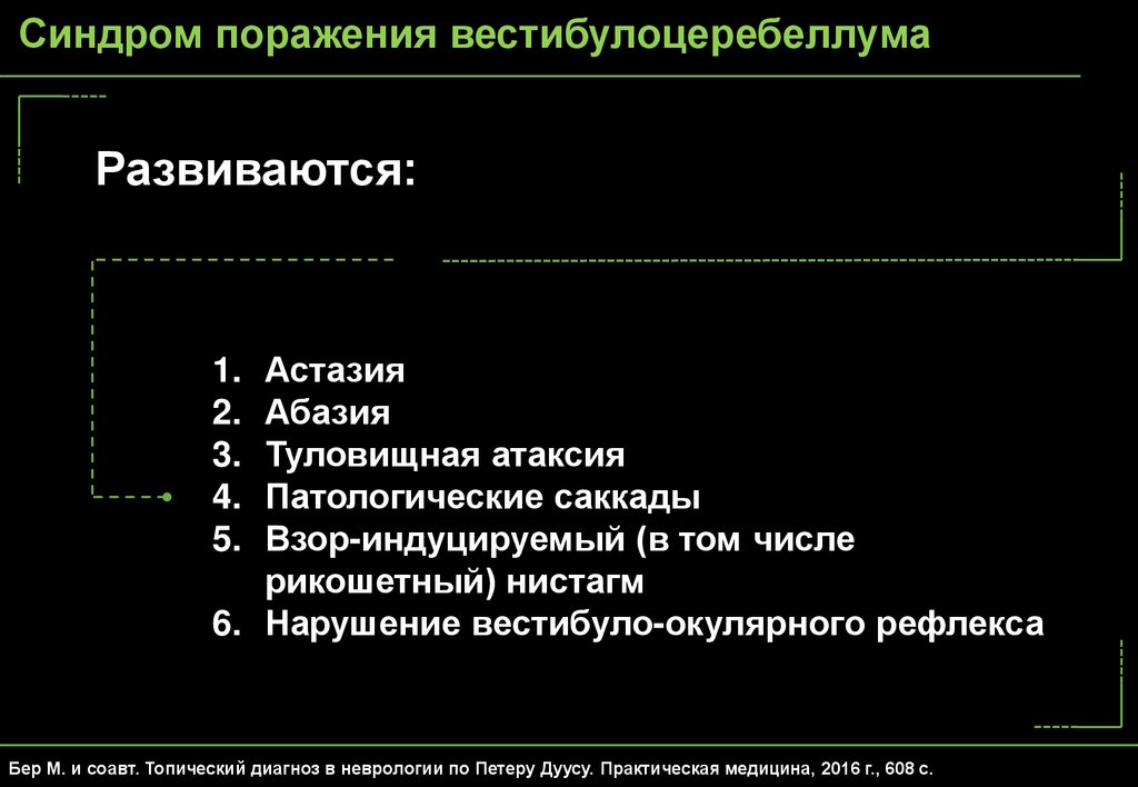 1. Бер М. и соавт. Топический диагноз в неврологии по Петеру Дуусу. Практическая медицина, 2016 г., 608 с.