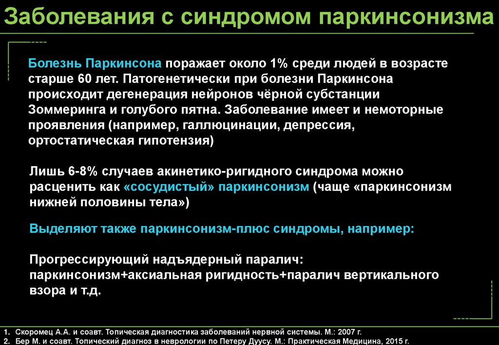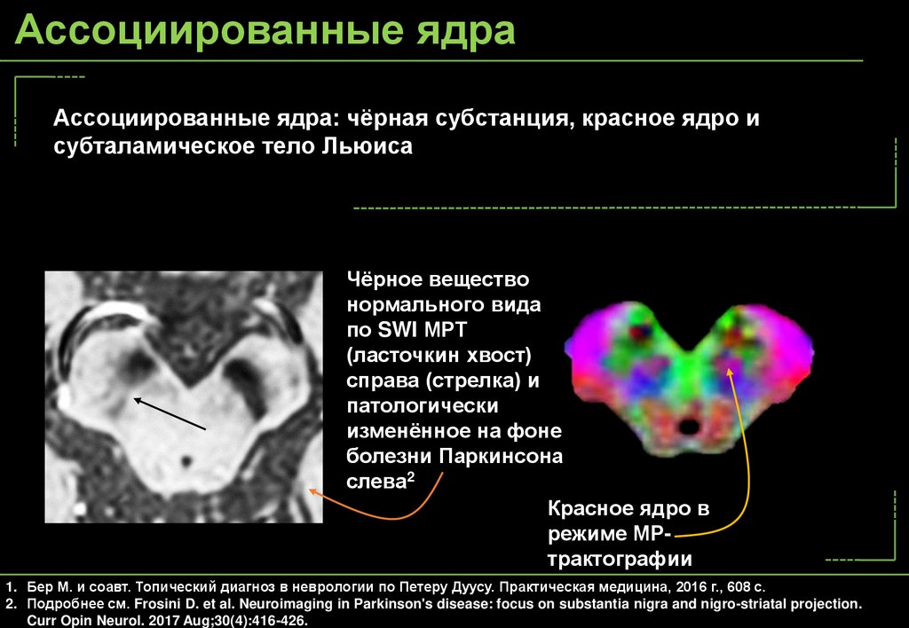 2. Подробнее см. Frosini D. et al. Neuroimaging in Parkinson's disease: focus on substantia nigra and nigro-striatal projection.