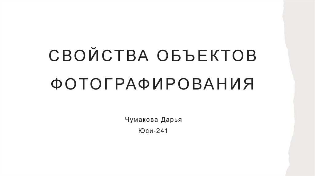 СВОЙСТВАОБЪЕКТОВ ФОТОГРАФИРОВАНИЯ