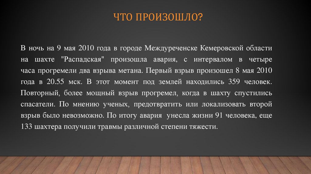 ЧТО ПРОИЗОШЛО?В ночь на 9 мая 2010 года в городе Междуреченске Кемеровской области