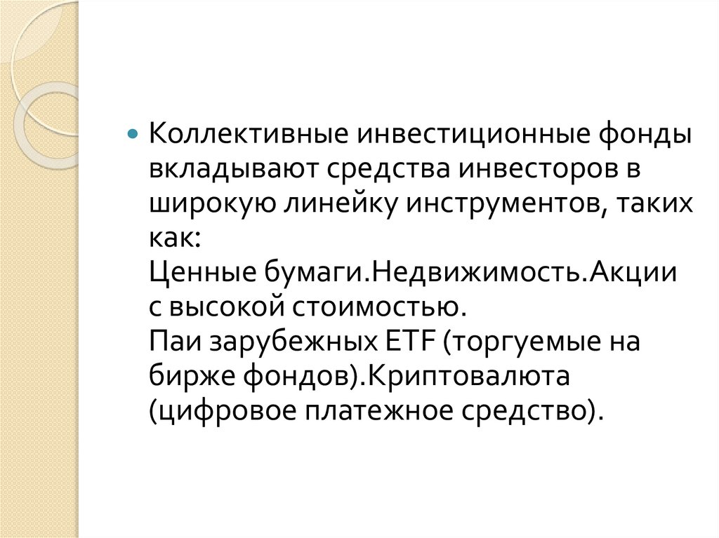 Коллективные инвестиционные фондывкладывают средства инвесторов в