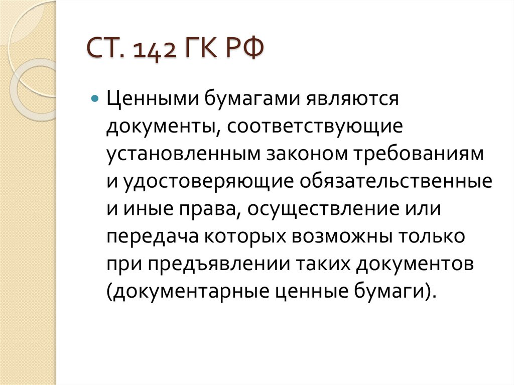 СТ. 142 ГК РФЦенными бумагами являются