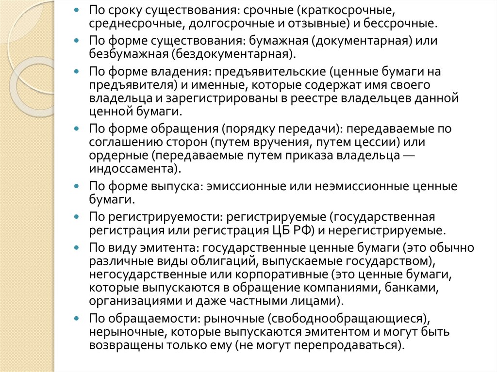 ценные бумаги). Ценными бумагами признаются