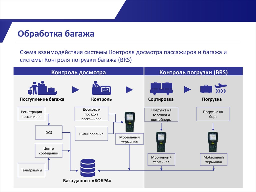 Обработка багажаСхема взаимодействия системы Контроля досмотра пассажиров и багажа и