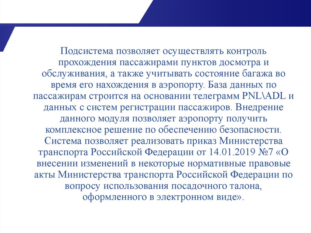 Модули автоматизации процессовобслуживания пассажиров и багажа