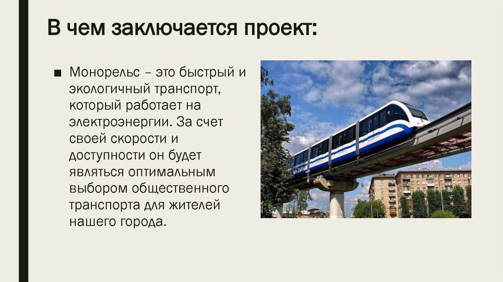 В чем заключается проект:■ Монорельс – это быстрый и