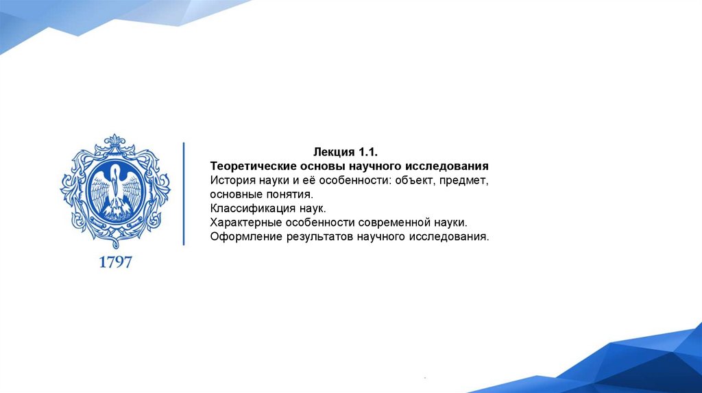 Теоретические основы научного исследования (лекция 1.1)