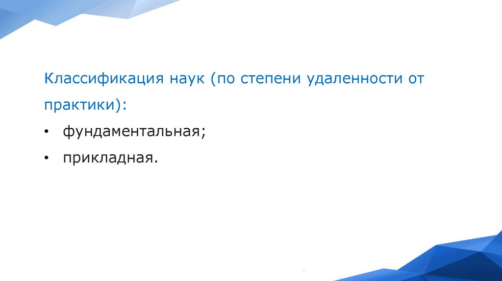 Классификация наук (по степени удаленности отпрактики):