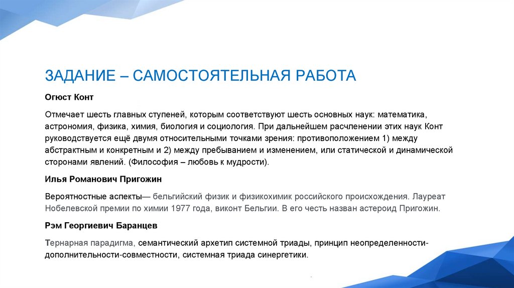 ЗАДАНИЕ – САМОСТОЯТЕЛЬНАЯ РАБОТАОгюст Конт