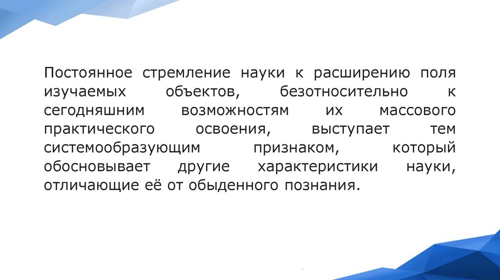 Постоянное стремление науки к расширению поляизучаемых