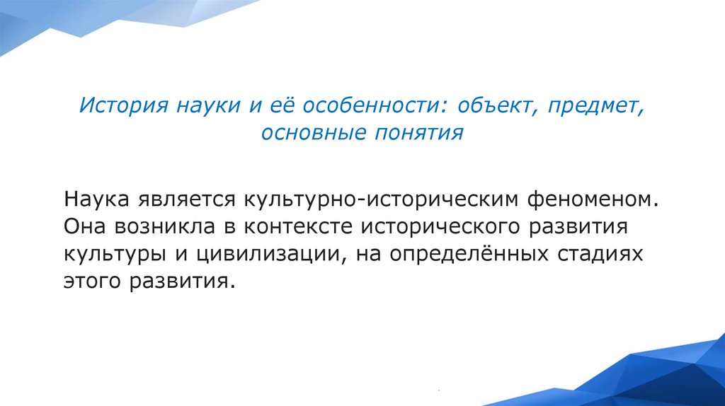 История науки и её особенности: объект, предмет,основные понятия