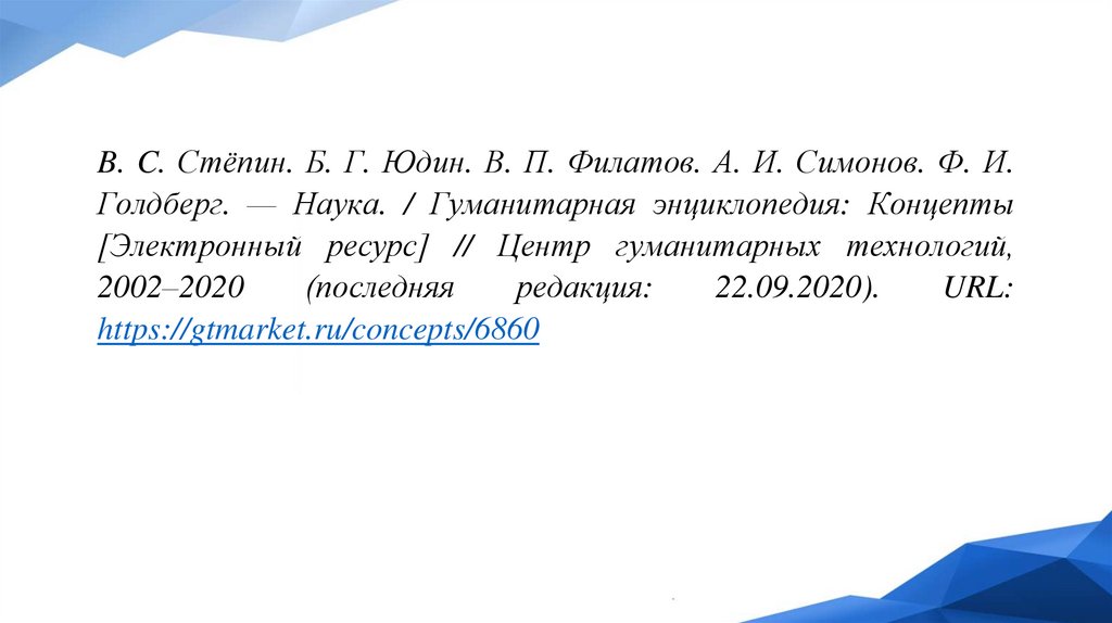 B. C. Стёпин. Б. Г. Юдин. В. П. Филатов. А. И. Симонов. Ф. И.Голдберг. — Наука. / Гуманитарная энциклопедия: Концепты
