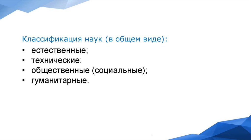 Классификация наук.