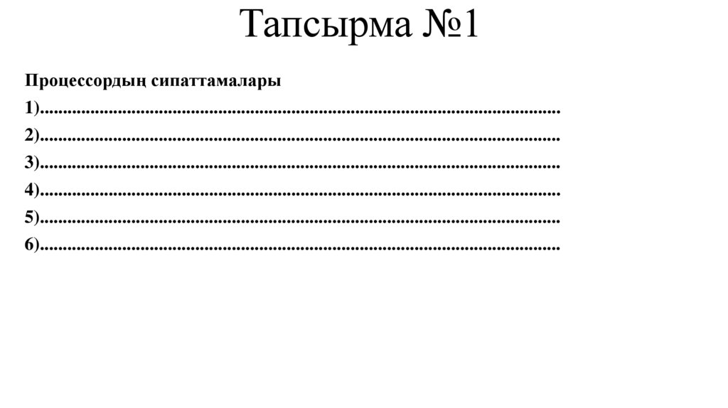 Тапсырма №1• Процессордың сипаттамалары