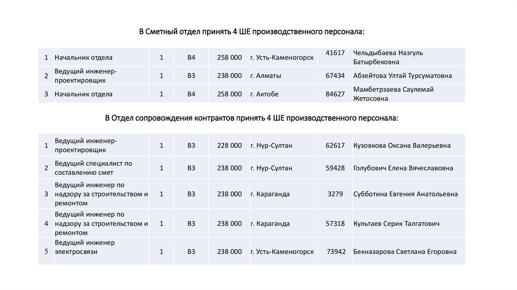 В Сметный отдел принять 4 ШЕ производственного персонала:41617