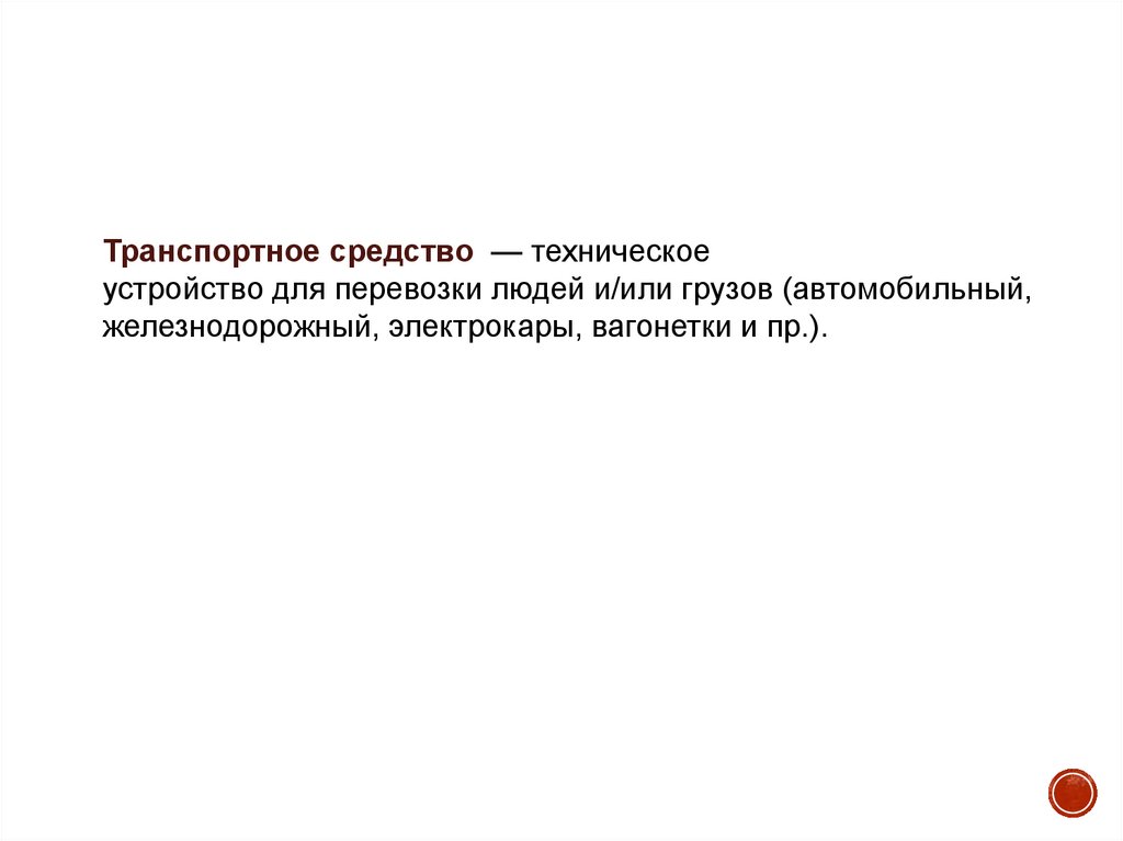 Транспортное средство — техническоеустройство для перевозки людей и/или грузов (автомобильный,