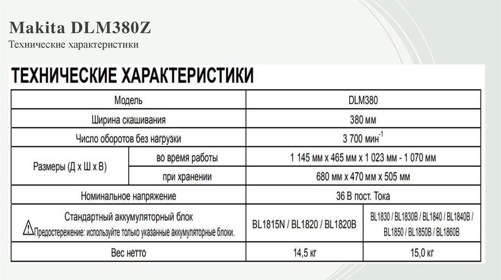 Makita DLM380ZТехнические характеристики