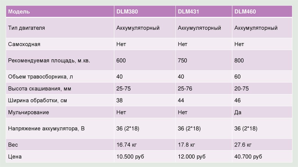 Сравнение модельного рядаMakita DLM380