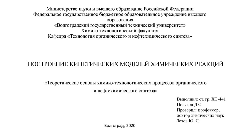 ПОСТРОЕНИЕ КИНЕТИЧЕСКИХ МОДЕЛЕЙ ХИМИЧЕСКИХ РЕАКЦИЙ
