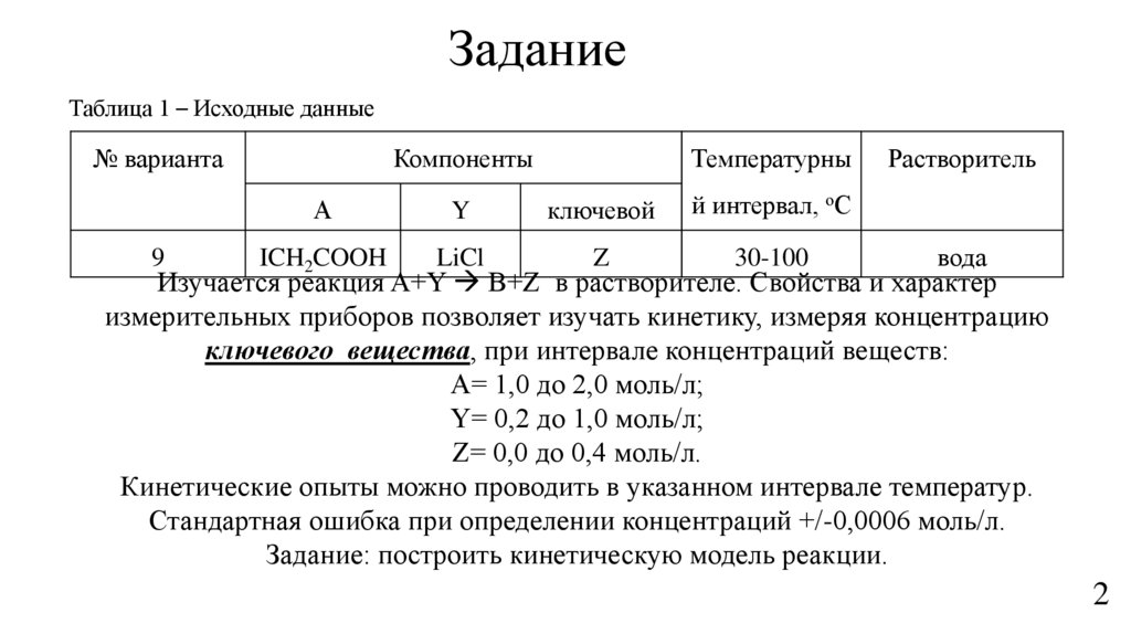 Изучается реакция A+Y B+Z в растворителе. Свойства и характер