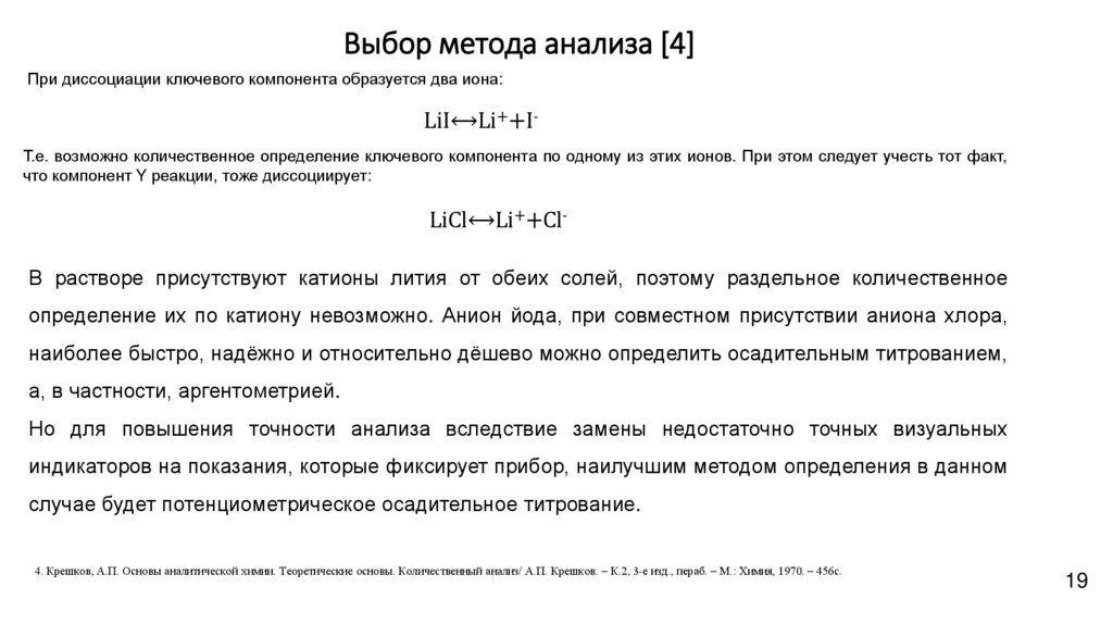 LiI⟷Li++IТ.е. возможно количественное определение ключевого компонента по одному из этих ионов. При этом следует учесть тот факт,