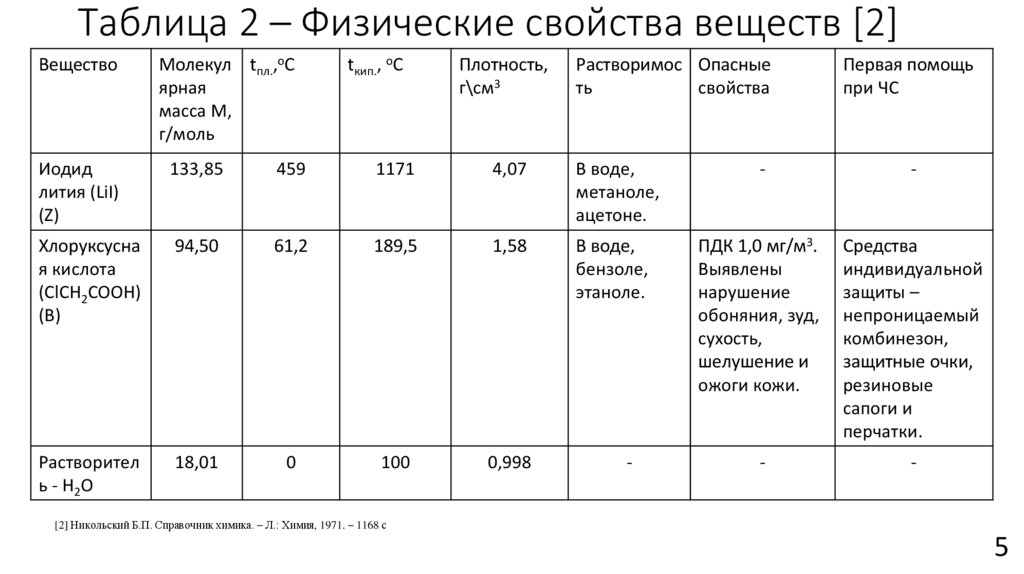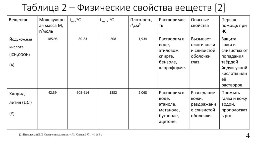 Таблица 2 – Физические свойства веществ [2]tпл.,oC