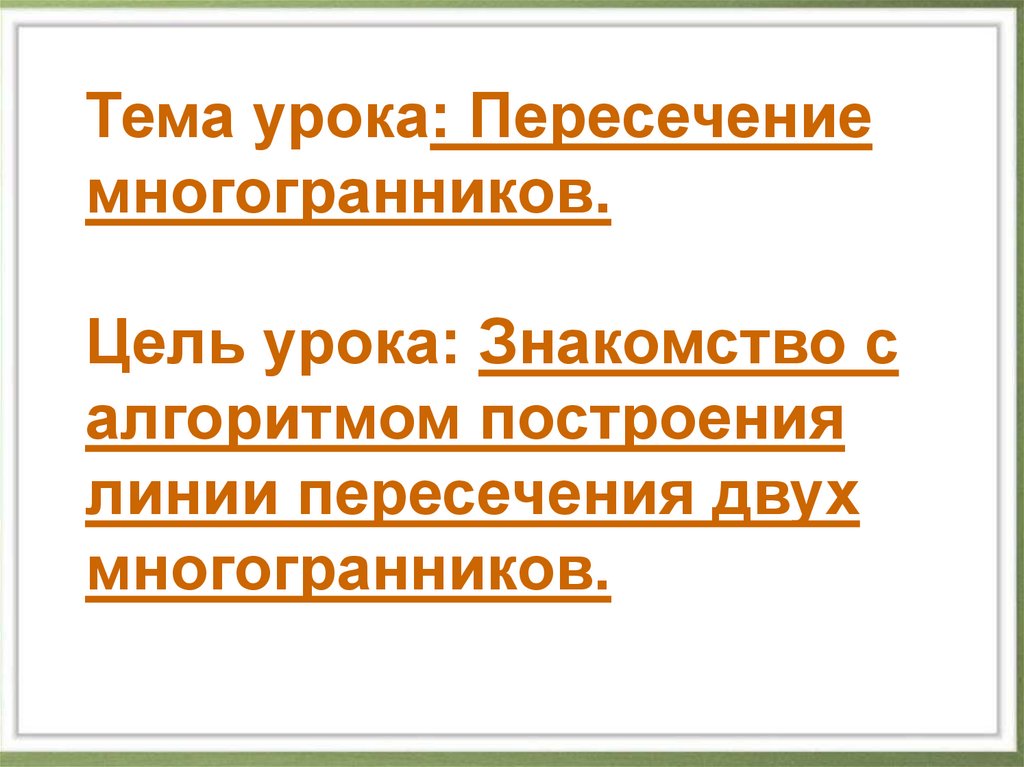 Тема урока: Пересечениемногогранников.