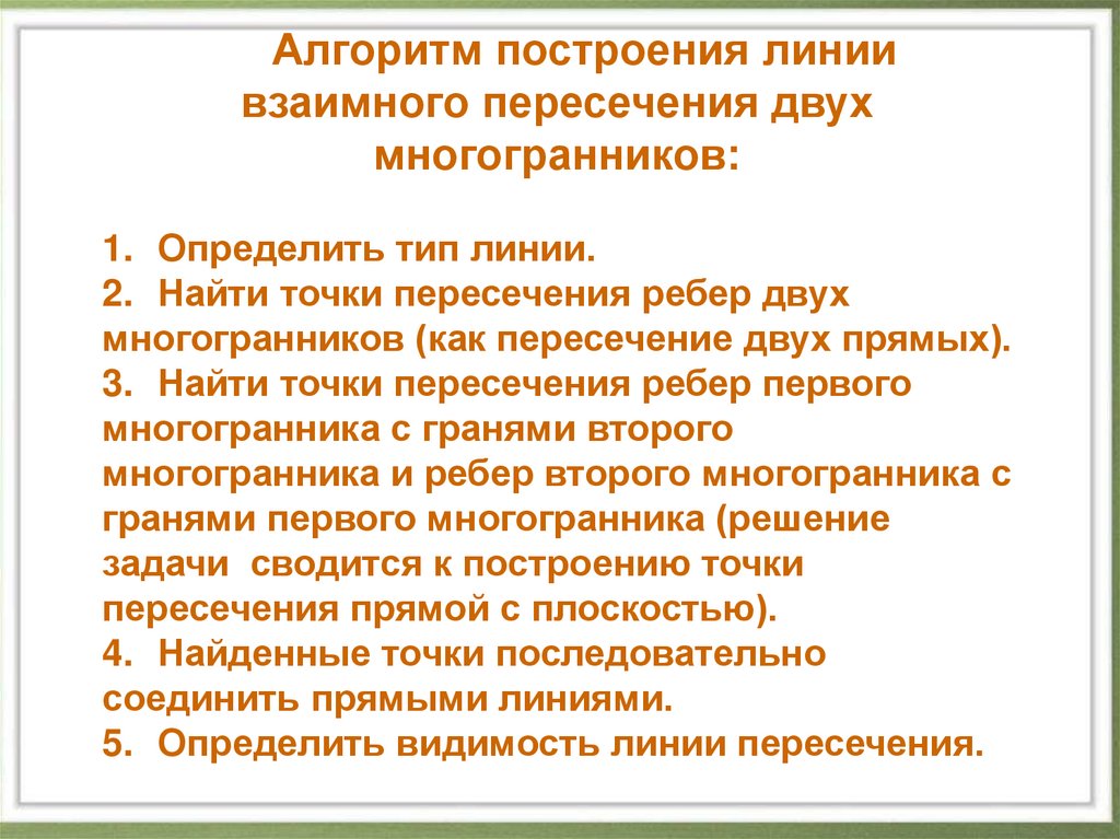 Алгоритм построения линиивзаимного пересечения двух