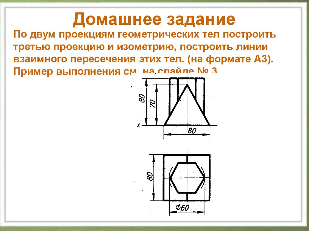 Домашнее заданиеПо двум проекциям геометрических тел построить