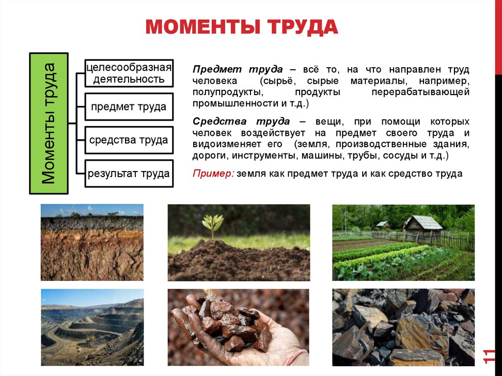 Пример: земля как предмет труда и как средство труда
