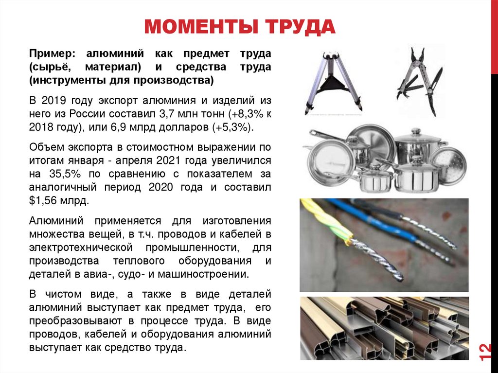 МОМЕНТЫ ТРУДАПример: алюминий как предмет труда