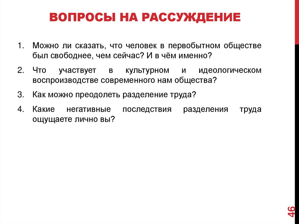 ВОПРОСЫ НА РАССУЖДЕНИЕ1. Можно ли сказать, что человек в первобытном обществе
