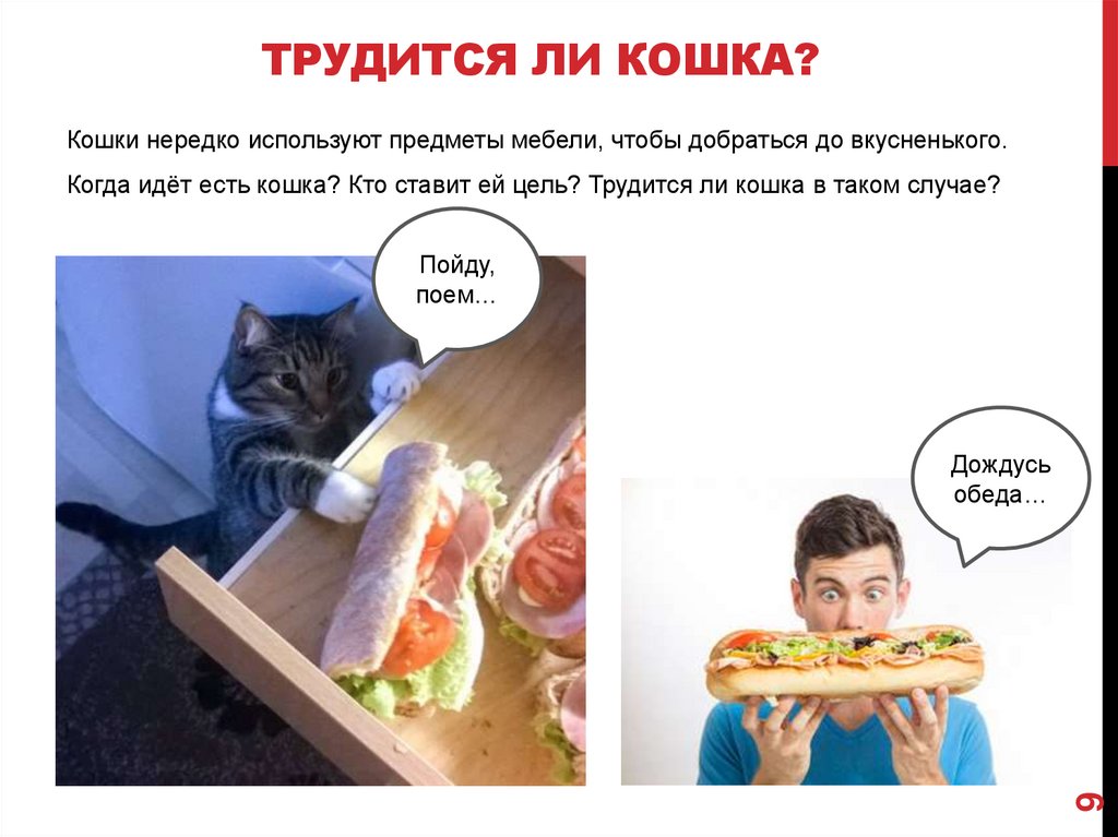 Когда идёт есть кошка? Кто ставит ей цель? Трудится ли кошка в таком случае?