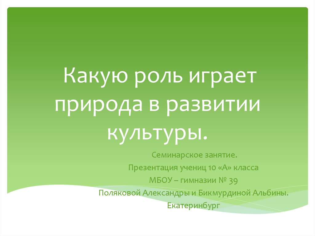 Какую роль играет природа в развитии культуры