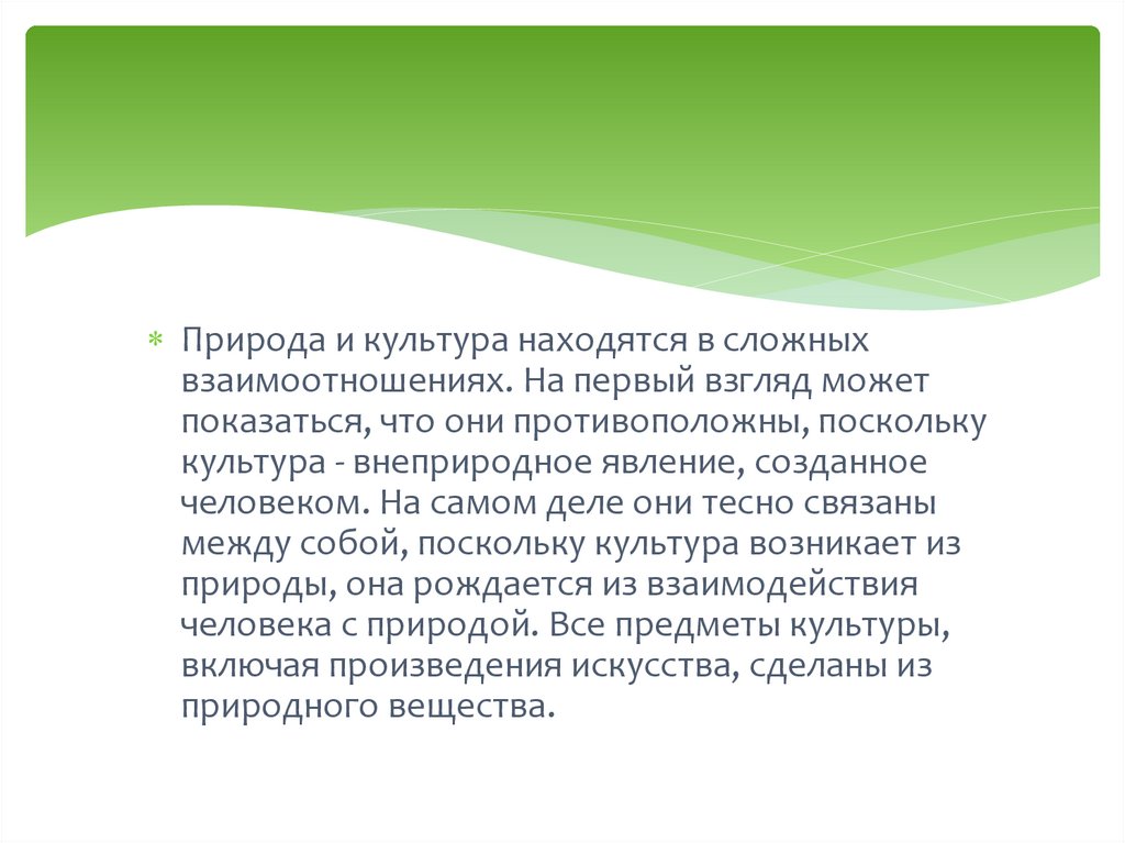 Природа и культура находятся в сложныхвзаимоотношениях. На первый взгляд может
