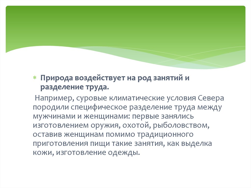 Природа воздействует на род занятий иразделение труда.