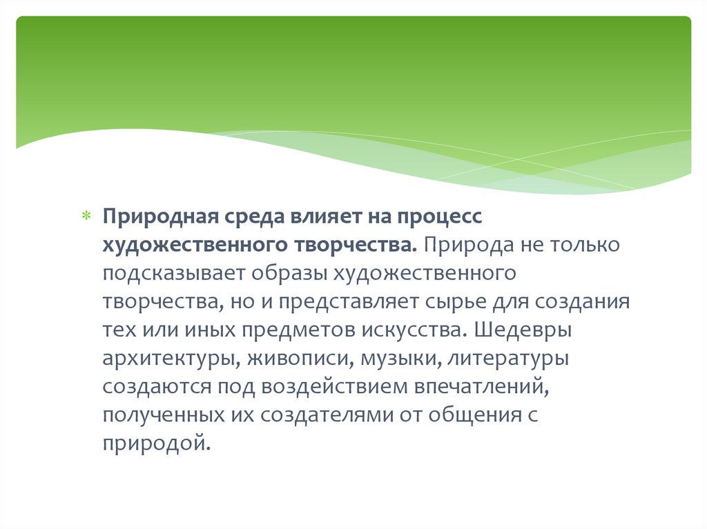 Природная среда влияет на процессхудожественного творчества. Природа не только