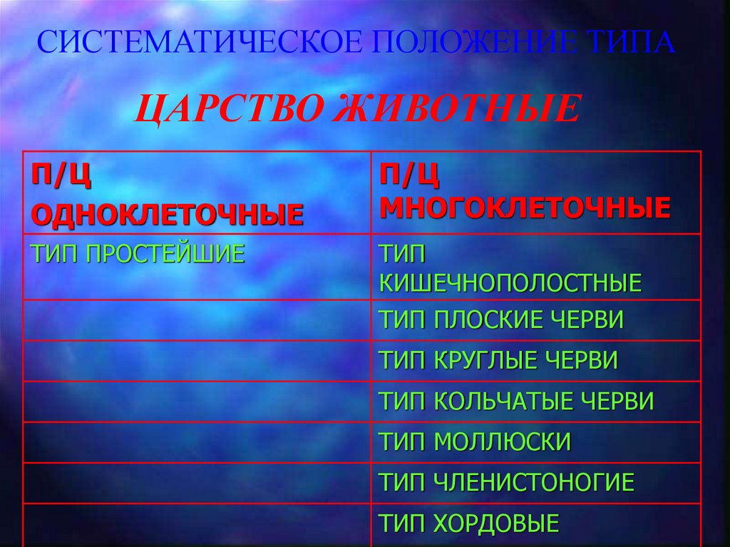 СИСТЕМАТИЧЕСКОЕ ПОЛОЖЕНИЕ ТИПАЦАРСТВО ЖИВОТНЫЕ