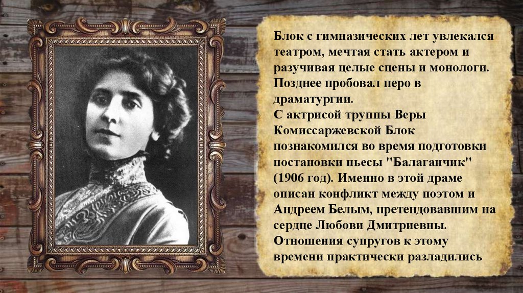 Блок с гимназических лет увлекалсятеатром, мечтая стать актером и