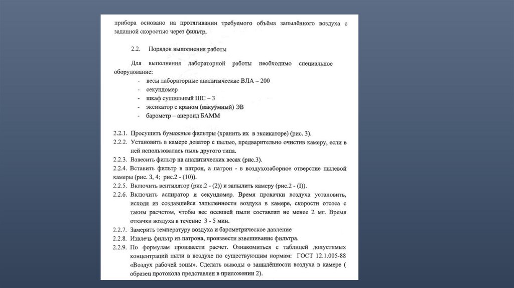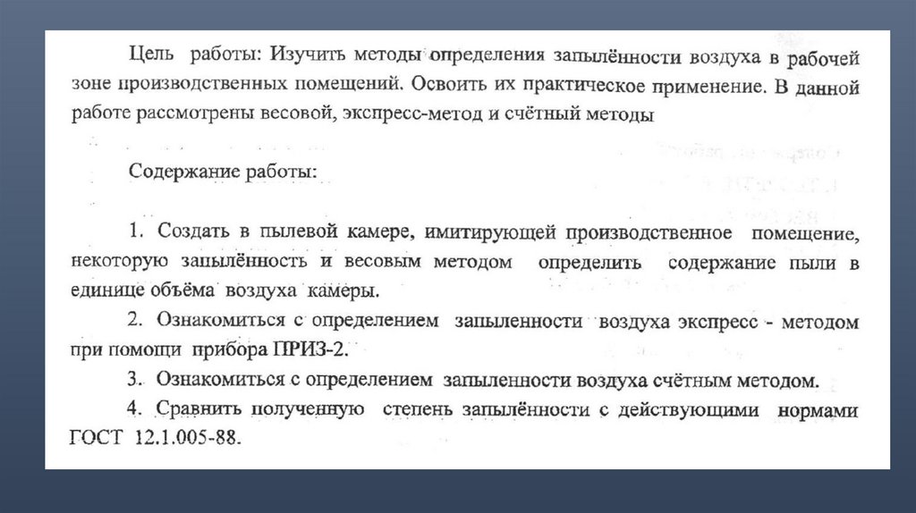 Исследование запыленности воздуха рабочих зон. Лабораторная работа №1