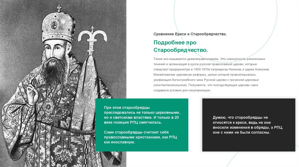 Сравнение Ереси и Старообрядчества.Подробнее про