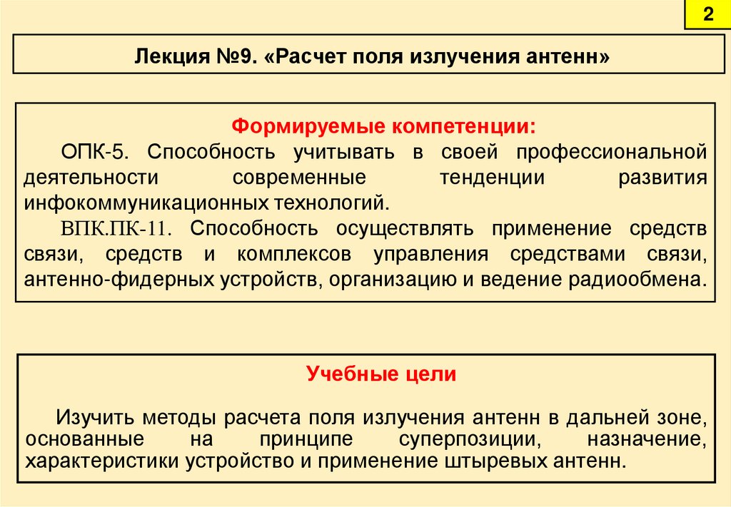 2Лекция №9. «Расчет поля излучения антенн»