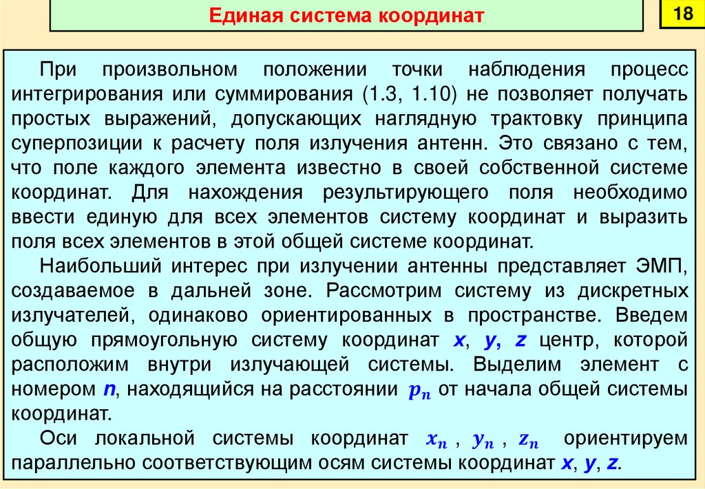 источниками ЭМП, известно во всех точках антенны. ЭМП,