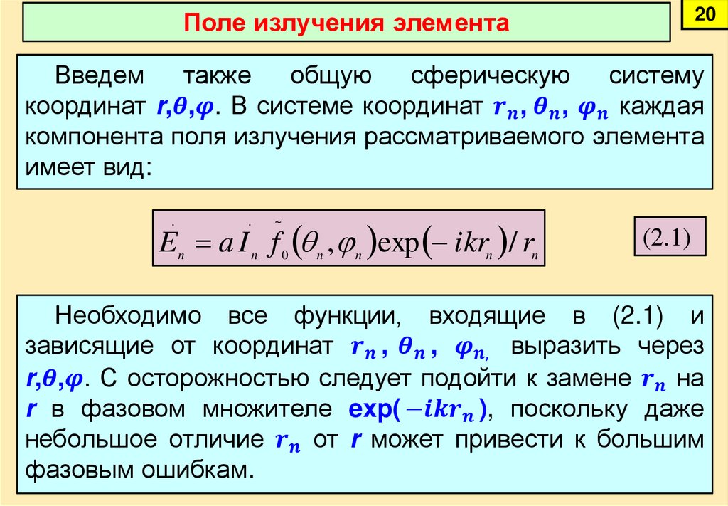 2. Особенности расчета поля в дальней зоне антенны.