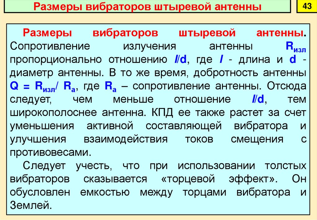характеристики устройство и применение штыревых антенн.