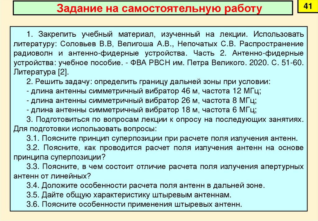Изучить методы расчета поля излучения антенн в дальней зоне,